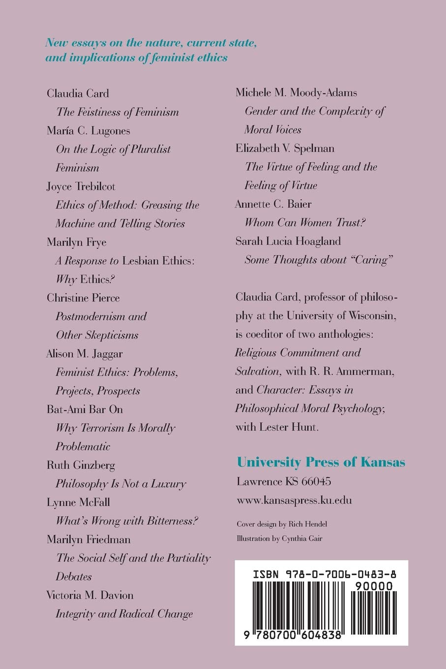 Which of the following best describes feminist ethics?. The philosophical study of morality b. Beings other than women may not agree because humans often only understand what they can relate to. Gilligan in her study of ethics critiqued the traditional Kohlberg research which asserted that principle-based ethics was the highest form of ethical thinking.