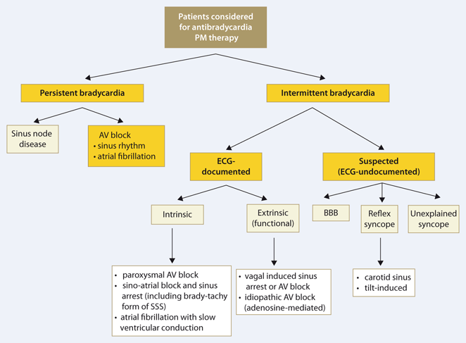 Beyond undiagnosed or untreated pre-existing atrioventricular block drug therapy for fetal tachycardia myocarditis including Lyme borreliosis and Chagas disease inflammatory infiltrative diseases eg sarcoidosis cardiomyopathies and neuromuscular disease may have caused bradycardia. Atrial Pacing is indicated for patients with sinus node dysfunction and normal AV and intraventricular conduction systems. Es wurde eine Zweikammer-Schrittmacher.