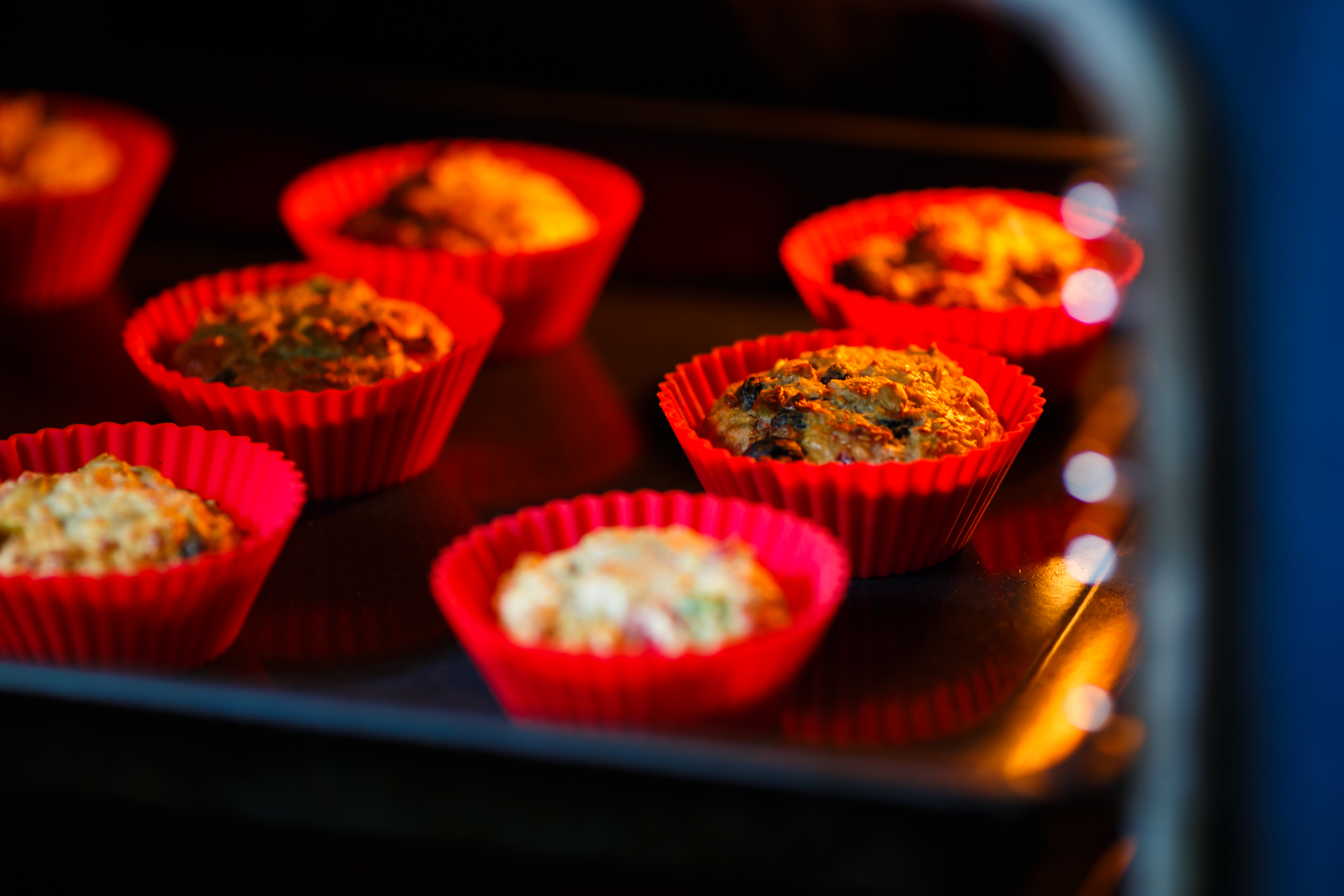 Place filled silicone cups either on a metal muffin tin or baking sheet for stability during baking.