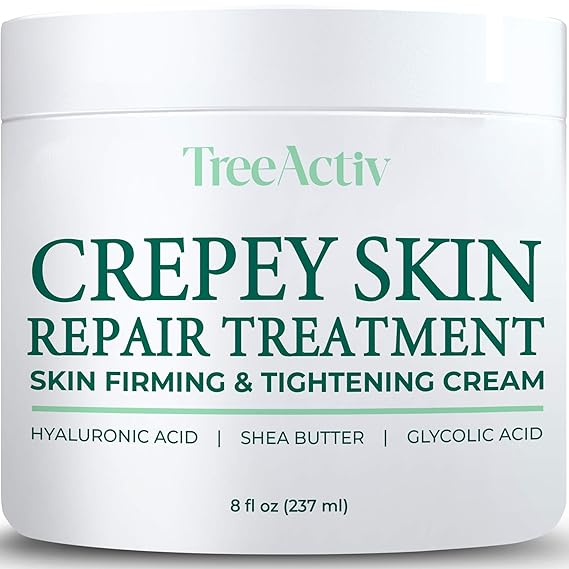 Retinol Vitamin A is the primary gradient in this lotion for protection against anti-aging and decreasing crepey-looking skin. Weve also added a fourth bonus product so you can treat crepey skin not just on your face but on your body too. This product which can be used for the face neck chest legs and arms contains hyaluronic acid vitamin E antioxidants and essential fatty acids. 06 TreeActiv Crepey Skin Repair Treatment Shea Butter Honey Glycolic Acid Deeply Hydrates Targets Wrinkles Fine Lines Anti-Aging Cream For Dry Dull Crepey Skin 8 fl oz 237 ml SMOOTHS OUT CREPEY SKIN. The retinol extracts help remove the fine lines dark spots wrinkles and improve skin elasticity. Handcrafted in the USA great for acne prone skin types. Its a nourishing cream that will reverse the visible signs of aging while also treating the underlying causes of wrinkles and fine lines.