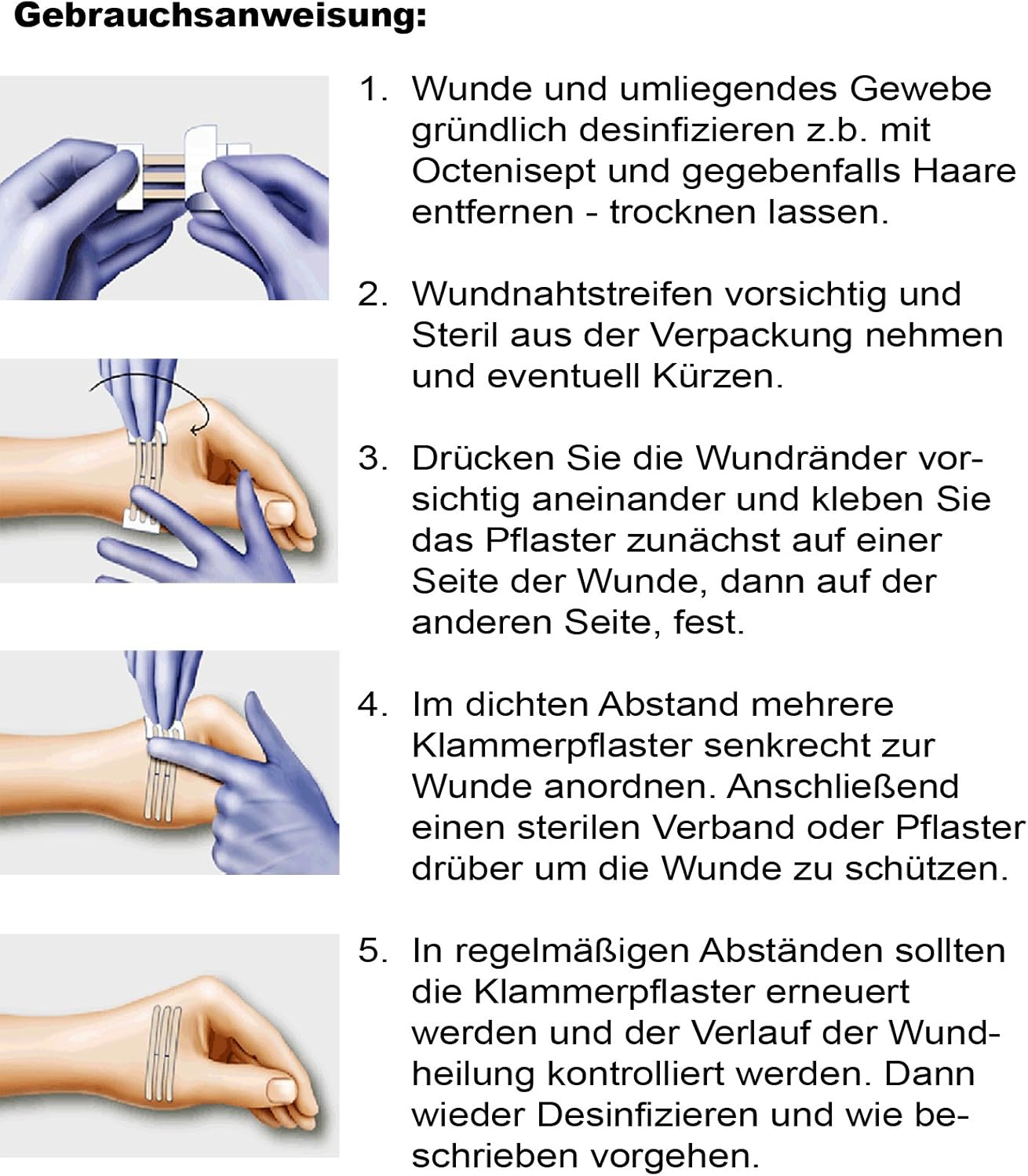 Bevor Sie die neue Kompresse auf die Wunde legen können Sie eine Gazewundauflage auf die Wunde geben. Durch eine gute Hautnaht kann die Wunde sicher verschlossen werden ohne dass große Narben zurückbleiben. Wie lange darf eine geklebte Wunde nässen bzw. Es kommt weniger auf die Länge der Wunde an sondern eher um die TIEFE. Wundnahtstreifen sollten mindestens eine Woche auf der Wunde bleiben da sie die Wundränder stabilisieren. Bei einem längerem Zeitraum zwischen der Verletzung und dem Nähen besteht ein hohes Infektionsrisiko. 2 Lass die Steri-Strips bei Schnittwunden an Gelenken 10-14 Tage drauf.