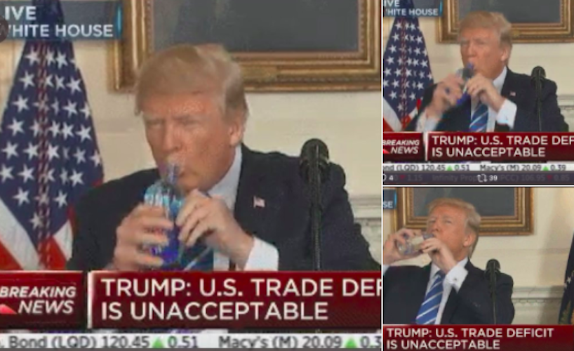 Make Trump drinking with two hands memes or upload your own images to make custom memes. Well well well donald trump drinking water adolf hitler. The meme shows a cartoon rendition of Trump drinking a giant bottle of Clorox.