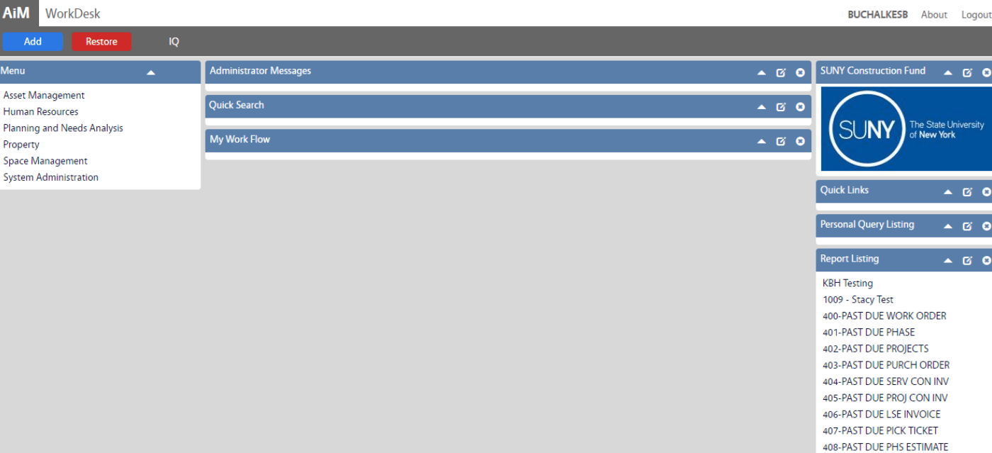 Note - For dataphone requests please contact ITS HelpDesk at 518-442-3700 M-F 830am - 500 pm. Betty Drummond bdrummonduaedu. From the main AiM menu click on Work Management. Queue - This screen will list ALL open phases assigned to the user not just for the 24-hour period for Daily Assignments. AIM The Work Order System AIM is where all Repair Requests get entered. Directions to Facilities Services. For an AiM System login contact Tammy Casey at tlcaseyumichedu.