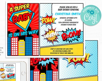Comic book themed baby shower. I always jump at the opportunities this blog has presented though and in doing so Ive adopted Picassos motto as my own. Check out our comic book shower selection for the very best in unique or custom handmade pieces from our shops. PRINTABLE Superhero Baby Shower Invitation Comic Book Baby Shower Announcement Super hero Baby Shower Superhero Baby Shower Invite OurSecretPlace 5 out of 5 stars.