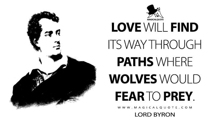 We loved with a love that was more than love. Love will find a way through paths where wolves fear to prey. Download or share this Lord Byron quote with your friends on facebook linkedin whatsapp twitter and on other social media. Love will find a way through paths where wolves fear to prey. Love will find a way through paths where wolves fear to prey. He is known to have been associated with numerous other thought provoking quotes on these topics like. Let us always meet each other with smile for the smile is the beginning of love.