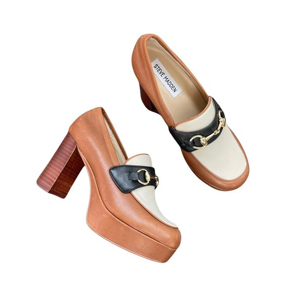 Shop Womens Steve Madden Brown Cream Size 7 Heels at a discounted price at Poshmark. Aproveite o Frete Gratis. Shiny bit ornaments add upscale style. Shop Womens Steve Madden Brown Cream Size 7 Heels at a discounted price at Poshmark. Aug 29 2021 - Loafers with loft Steve Maddens Cinderella platform slip-ons uplift your look. Gold-tone horse-bit accent at vamp. Leather upper I may have other sizes for this particular product so be sure to to check my page.